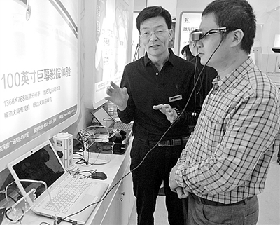 在第十六届高交会1号馆内,参展来宾在体验智能可穿戴产品。