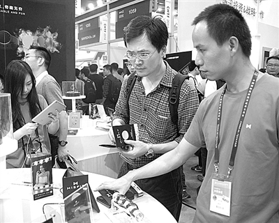 在第十六届高交会上,MISFIT展台工作人员向观众介绍其自主研发的智能手环。文阳洋摄