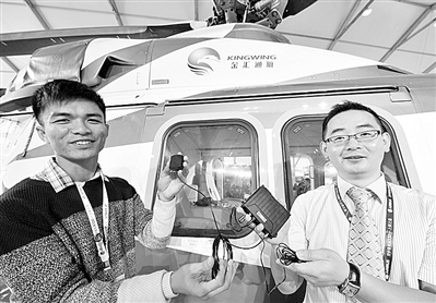 以直升机销售、托管为核心业务的上海金汇通航在珠海航展上展示了自主研发的直升机低空飞行监控系统。该系统经过两年多运行,已得到了直升机用户和军民航管理机构的认可。图为金汇通航工作人员在展示小巧的直升机低空飞行监视系统组件。 新华社 杨 光摄