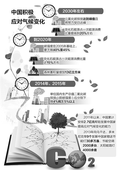 在联合国利马气候大会召开前夕,《中国应对气候变化的政策与行动2014年度报告》发布。《报告》全面介绍了我国应对气候变化所采取的政策措施和取得的显著成效,展示了我国节能减排的坚定决心。同时,我们也期待全球携手合作,共同应对环境问题——