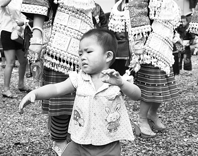 贵州苗寨里的孩子从小就受舞蹈的熏陶。银饰的声音铃铃铃的,大木鼓的声音咚咚咚的,小朋友的手脚不自觉就动起来了,可怎么是这个表情呢?