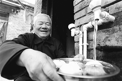 右图 11月22日,河南省商水县平店乡农民用上了清洁的自来水。该县每年从财政预算和集中使用的城建资金中安排一部分资金,用于农村供水设施建设,确保农民喝上洁净、安全、方便的自来水。 陈纪红摄