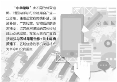 徐昊认为,“中华酷联”走不同的转型道路,对国内手机行业格局会产生一定影响。“随着运营商终端补贴、渠道补贴、广告投放、实物赠送的逐渐演变,运营商对渠道的强势控制能力必然减弱。在各大手机厂商直接加强与区域渠道合作和自主电商策略下,区域优势的手机渠道将成为争夺和投资重点。”