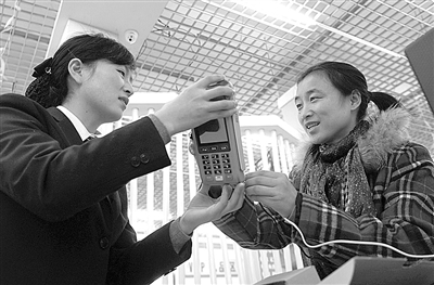 近日,江西上饶银监分局联合当地金融机构,推出“量体裁衣”客户经理制,根据不同需求,为小微商户提供贴身服务。图为江西上饶农商行工作人员指导商户使用POS机。 本报记者 赵 晶摄