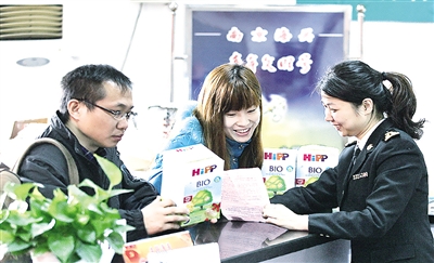 2014年12月31日,南京金陵海关驻邮局办事处通关科员工正在为客户服务。新的一年,金陵海关将继续推出快速通关验放措施,做好服务。