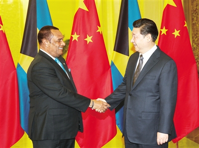 一月七日,国家主席习近平在北京人民大会堂会见巴哈马总理克里斯蒂。