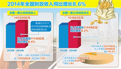 就支出本身而言,2014年支出规模为151662亿元,并未达到年初153037亿元的预算目标。“在出厂价格和原材料价格平稳、下行的时期,支出的成本是降低的。比如,以前花100万元办事,如今98万元就可以了。”白景明表示,除此之外,最重要的是,在缓解收支矛盾方面初见成效。一方面,保障了支出的正常需求,并没有因为削减支出而使重点领域和民生领域受到影响。另一方面,说明资金使用效率得以提升,使得压缩支出较为明显。