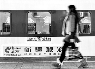2月1日13时06分,由新疆维吾尔自治区旅游局冠名的“新疆旅游号”——乌鲁木齐南至北京西Z70次列车开始冠名后的首次旅程。新华社记者 赵 戈摄