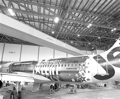 总部位于新加坡的捷星航空日前为庆祝由该公司赞助的“亚洲达人秀”首季开播,特地将一架A320客机机身喷绘上“亚洲达人秀”品牌图案。这架飞机定于今年2月投入运营。 禹 洋供图