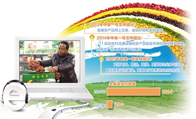 今年的中央一号文件提出,“支持电商、物流、商贸、金融等企业参与涉农电子商务平台建设。开展电子商务进农村综合示范”,“加大对乡村旅游休闲基础设施建设的投入,增强线上线下营销能力,提高管理水平和服务质量。”这是中央一号文件连续第三年提及促进农村电子商务发展。国务院发展研究中心农村经济研究部巡视员谢扬认为,3年来的不同表述,正是农村电子商务“破茧成蝶”、从“尝鲜”到“推广”的写照。