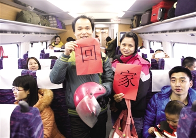 能够乘坐高铁回家,源自于贵广、南广高铁的开通。以前粤桂两省区仅仅通过广茂铁路相连,该线路属于客货混跑的线路,客运能力几近饱和。每至春运,“珠三角”往广西方向供需矛盾突出。去年年底,贵广、南广铁路开通后,广州与桂林之间铁路运行时间压缩至3小时内,较开通前缩短8小时以上;与南宁之间铁路运行时间压缩至4小时,较开通前缩短10小时以上。