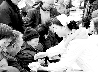 春节临近,四川华蓥市举行送文化、科技、卫生、法律“四下乡”活动,丰富多彩的内容和专业周到的服务,为当地群众送来温暖与欢乐。近年来,“四下乡”活动已成为华蓥践行群众路线、服务群众的一项重要措施。图为活动现场群众进行医疗咨询。寒 歌摄