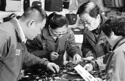 2月21日,河北白沟新城广顺箱包公司研发团队,利用春节假日开展市场调研,并讨论新产品设计图案。