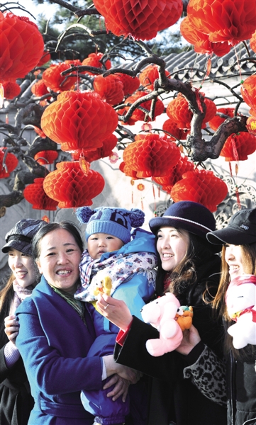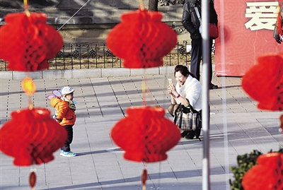 | 2月22日,北京大观园红灯高挂,市民全家出动开心逛庙会。羊年春节,北京市开展庙会、花会、展览等系列文化惠民活动,让市民过一个文化味十足的春节。 |