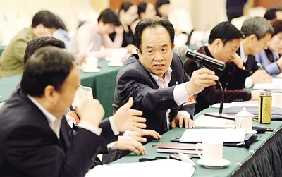 3月6日下午,全国人大陕西代表团在驻地分组审议政府工作报告。 本报记者 李景录摄