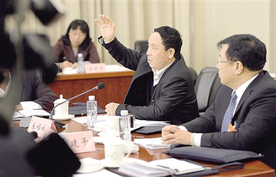 人大山东团卜昌森代表(右)在审议政府工作报告时踊跃发言。