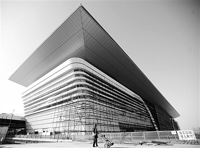 3月22日,一名工人从沈阳南站东站房旁经过。目前,东北地区最大的火车站沈阳南站工程施工进展顺利,整个工程预计将于2015年年底前竣工。