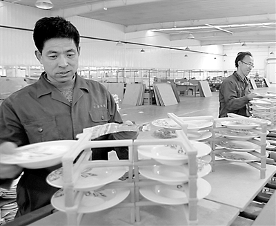 4月9日,河北阳原县达鑫陶瓷有限责任公司员工正在忙生产。该公司生产的陶瓷产品出口30多个国家和地区,年实现销售收入近亿元。