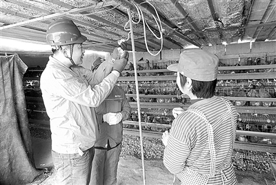 近日,国网山东莱芜供电公司里辛供电所的工作人员在养殖户家中摸排光伏用电情况。莱芜电网因地制宜大力发展新能源装机,努力让农村地区用上可靠电、合格电,目前莱芜当地已形成了火电、风电、太阳能发电并驾齐驱的新能源格局。 王宪才摄