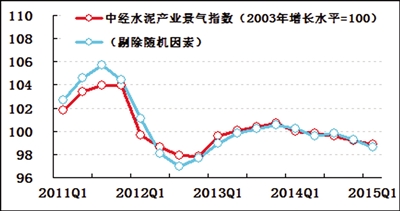 2015年一季度,中经水泥产业景气指数为98.9,比去年四季度下降0.3点;中经水泥产业预警指数为66.7,比去年四季度下降10点,已临近“浅蓝灯区”的下临界线。
