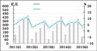 经初步季节调整,一季度水泥行业实现税金总额137.9亿元,由去年四季度的同比下降11.4%转为同比增长3.4%。