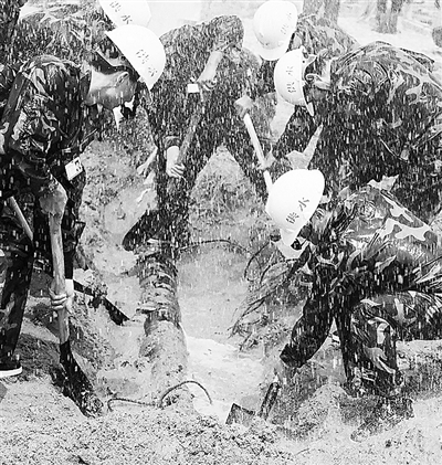 汕头市自来水总公司供水抢修队的抢修现场。
