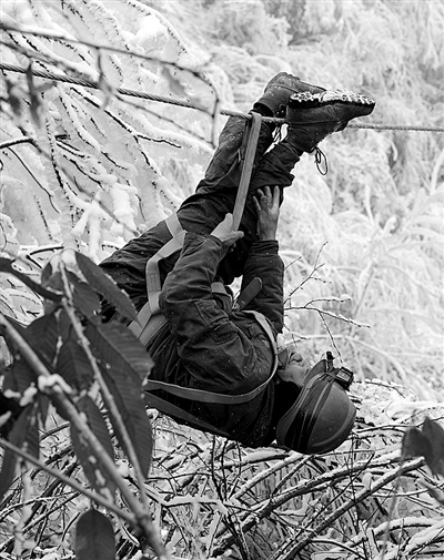 国网秭归县供电公司的抢修班组成员正在抢修三峡库区湖北省秭归县的供电线路。