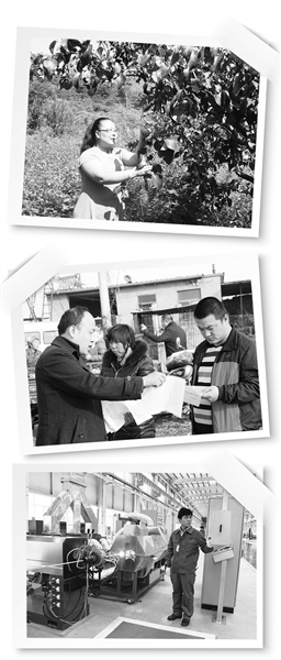 上图 河北迁安市的农家女高丽萍选择了回乡创业,创办了教场沟特色生态民俗村。图为高丽萍在打理自家种植的果树。