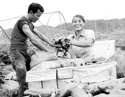 近日,江西省遂川县泉江镇蔬菜种植户蒋全保夫妇在地里采摘自己种的蔬菜。近年来,遂川县金融部门创新推出“公司+基地+农户+互助社”等多层次融资模式支持当地特色产业发展,使包括蒋全保在内的2万余户山区农民走上了脱贫致富道路。 李建平摄