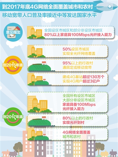 《意见》提出,要加快推进全光纤网络城市和4G网络建设,2015年网络建设投资超过4300亿元,2016年至2017年累计投资不低于7000亿元。“通过大规模的投资,城乡网络覆盖率提高了,规模效应才能出现,成本才能下降。”胡坚波说。