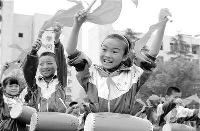 5月28日,四川华蓥市安丙小学(原永兴小学)的少先队员正在表演颇有特色的传统文体项目腰鼓,喜迎“六一”国际儿童节。 寒 歌摄