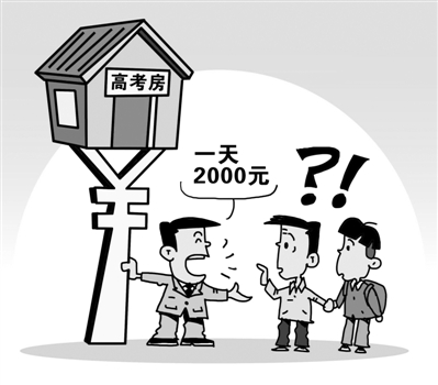 有媒体走访河南省郑州市多家高考考点附近的酒店发现,“高考房”依旧火爆,普通旅馆房源甚至都叫价过千,有的家长为确保房源多订、互订,准备交换。面对“高考房”价格疯涨,相关部门应采取一些降温措施。比如,教育主管部门在高考考点布局上要更加科学合理,尽可能让城区考生就近考试;工商等部门要加强监管,规范宾馆酒店在高考期间的涨价行为;交通运输等部门要加强高考期间的道路交通管理,保障道路畅通。唯有如此,才能让“高考房”价格回归理性。