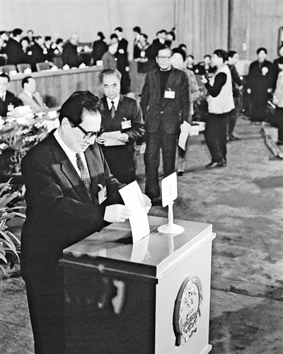 1992年10月,乔石同志在中共十四届一中全会上再次当选为中央政治局委员、常委。