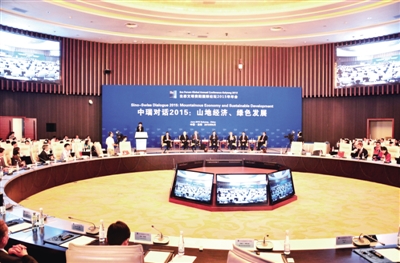 上图 在“中瑞对话2015:山地经济、绿色发展”分论坛上,来自中瑞两国的政府官员、专家学者、企业负责人就生态环保、山地经济发展进行交流。本报记者 吴秉泽摄