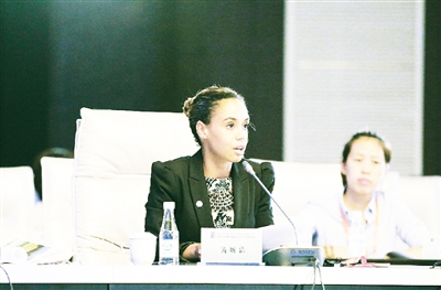 左图 联合国开发计划署驻华代表处政策与伙伴关系团队主管芮婉洁在论坛上发言。 本报记者 吴秉泽摄
