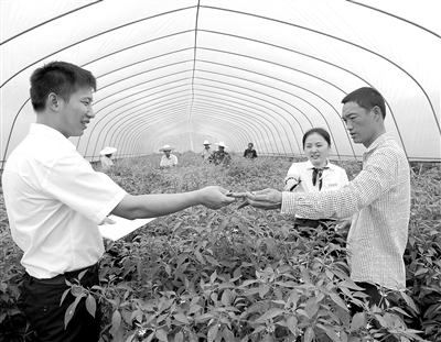 为支持温室大棚用先进技术实现远程控制,江西玉山县农联社信贷员向农户了解资金需求及生产情况。 远 舟摄