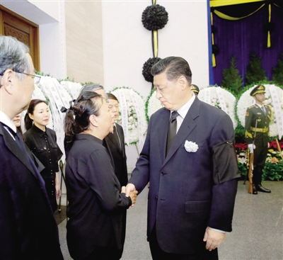 习近平李克强张德江刘云山王岐山张高丽胡锦涛等到八宝山革命公墓送别。江泽民在外地送花圈表示哀悼
