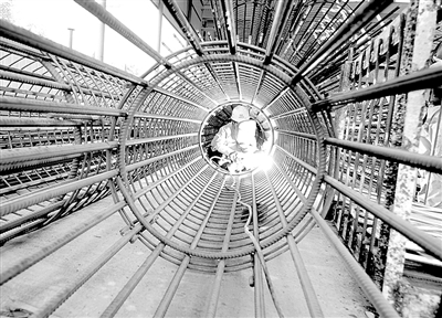 一名工人在重庆轨道交通5号线华福路段施工。在中铁隧道集团一处有限公司重庆轨道交通5号线华福路段施工现场,工人们冒着高温酷暑坚守岗位,确保工程安全快速推进。 新华社记者 周衡义摄