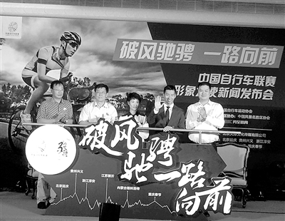近日,影视演员窦骁(右二)签约为中国自行车联赛形象大使。由中国自行车协会主办的中国自行车联赛自2014年7月正式启动以来,已经吸引了超过800万骑行人群和1500万爱好者关注并参与。本报记者 马洪超摄