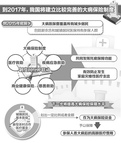 “全面实施大病保险,并不能完全确保每一位大病患者都不发生灾难性支出。”国务院医改办负责人明确表示,强化基本医保、大病保险、医疗救助、疾病应急救助、商业健康保险及慈善救助等制度间的互补联动,明确分工,才能更好地避免因病致贫和因病返贫。为此,应建立大病信息通报制度,支持商业健康保险信息系统与基本医保、医疗机构信息系统进行必要的信息共享。大病保险承办机构要及时掌握大病患者医疗费用和基本医保支付情况,加强与城乡居民基本医保经办服务的衔接,提供“一站式”即时结算服务,确保群众方便、及时享受大病保险待遇。对于经大病保险支付后自付费用仍有困难的患者,民政等部门要及时落实相关救助政策。