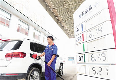 8月4日,河北保定一家加油站的工作人员在为汽车加油。当日,国家发展改革委发出通知,决定将汽、柴油价格每吨分别降低220元和215元,测算到零售价格90号汽油和0号柴油(全国平均)每升分别降低0.16元和0.18元,调价执行时间为8月4日24时。