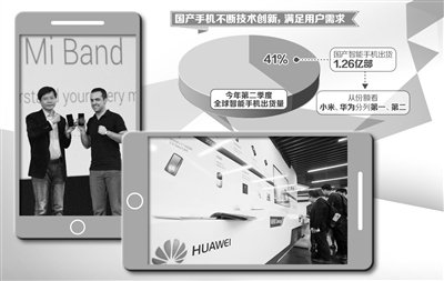 国产手机们的“底气”显得理所当然。来自市场研究机构的数据显示,今年第二季度,国产智能手机出货1.26亿部,占全球智能手机出货量的41%,从份额看,小米、华为分列第一、第二,苹果排名第三,VIVO则取代了三星排名第四。