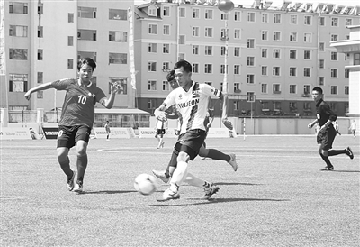 中韩首届青少年足球友谊赛、“三星杯”首届中韩友好城市青少年足球友谊赛13日在吉林省延边朝鲜族自治州龙井市举办。来自中韩两国的48支青少年足球队将在9天时间里同场竞技,切磋球艺,并在场下开展丰富多彩的友好交流活动。图为参赛中学生在球场比赛。
