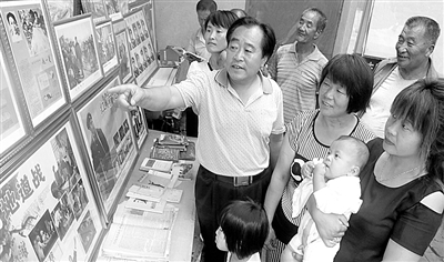 8月26日,山东无棣县闫家花园村办起了抗日战争展览室,展示抗战题材的资料、图片、物品,吸引了许多村民参观。 本报记者 李树贵摄