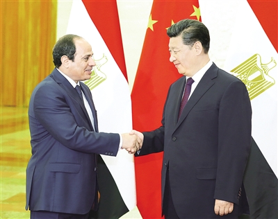 习近平欢迎塞西来华出席中国人民抗日战争暨世界反法西斯战争胜利70周年纪念活动。习近平指出,当前中埃全面战略伙伴关系不断深化和充实。两国各领域务实合作不断向前推进,地方、人文、军事交流密切,在国际和地区事务中保持良好沟通和协调。下一阶段,双方要保持高层交往,推进中埃产能合作,加强基础设施建设领域合作,加强安全等领域合作,在联合国等多边领域继续携手努力,维护发展中国家共同利益。