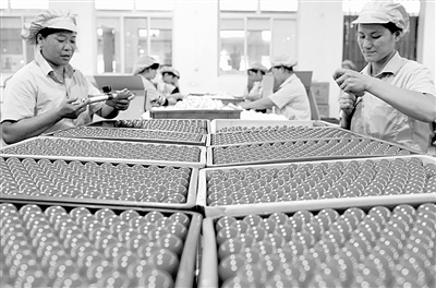 9月9日,河北省成安县望远制盖有限公司工人忙生产。该公司年生产瓶盖2亿多只,是华北地区最大的瓶盖生产基地,产品除销往全国各地外,还出口多个国家和地区。 清 华摄