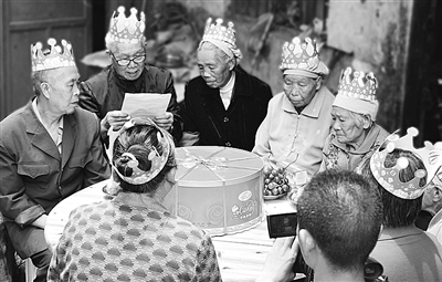 近日,云南省镇雄县云福乡村发展促进会为8位60岁以上的空巢老人举行集体生日会。生日会还邀请了当地一些留守儿童参加。据了解,此次活动收到了来自全国各地400多位捐款人的捐款。 李文很 摄