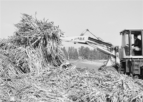 10月15日,江苏省东海县畜牧养殖户正在田间回收玉米秸秆。该县通过引导农民树立生态环保意识,走“种植、肥料、养畜和沼气”秸秆综合利用之路,实现了农民增收和生态保护的双赢。 张正友摄