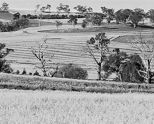 澳大利亚的油菜花多生长在辽阔的平缓之地,少了精致错落高低起伏的层次感,但多了一分开阔的大气,配以清澈的蓝天白云,又是一番别样的风情。图为澳大利亚新南威尔士州油菜花盛开的田野。
