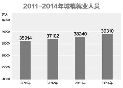 就业稳步增加。高度重视就业工作,以改革促进大众创业、万众创新,在经济增速放缓的背景下就业总量不降反升。2014年末,全国就业人员达到77253万人,比2010年末增加1148万人。其中,城镇就业人员增加到39310万人,占全部就业人员的比重为50.9%,比2010年末提高5.3个百分点。2014年农民工总量为27395万人,比2010年增长13.1%,年均增长3.1%。2015年上半年新增就业718万人,完成全年目标的71.8%。